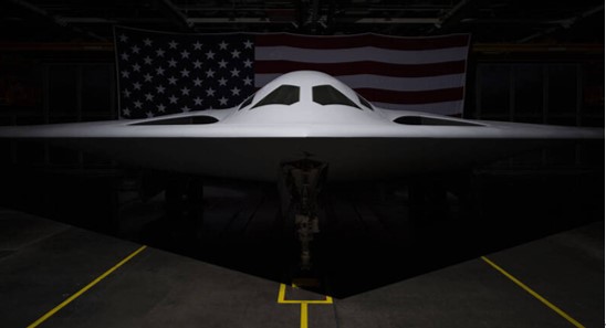 上圖為B-21「突襲者」隱形戰略轟炸機,是諾斯洛普·格魯曼Northrop Grumman研發的遠程轟炸機用於取代美國空軍現役的B-2幽靈戰略轟炸機。