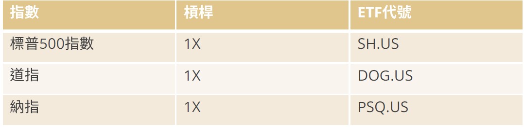 • 若想為手上持有的美股作對沖用途,可考慮以下反向ETF作為工具