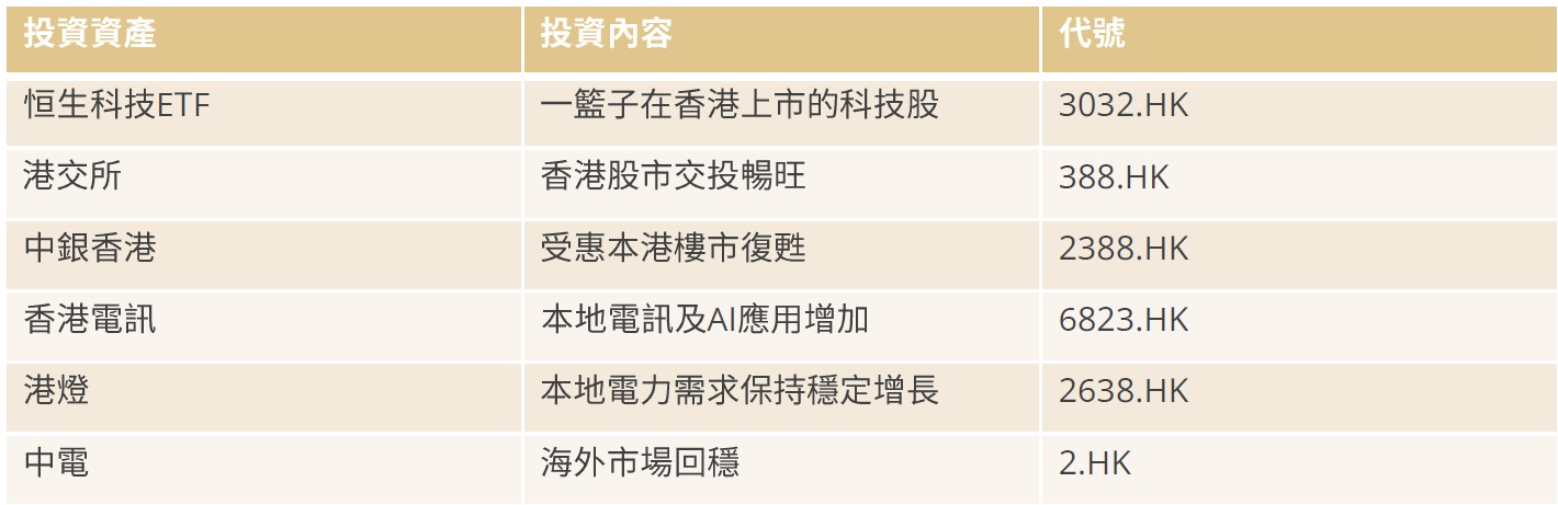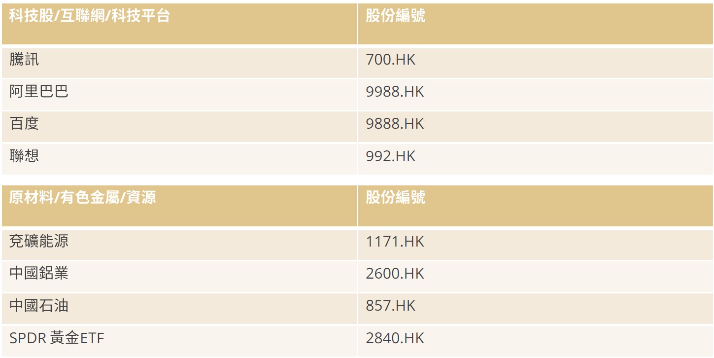 • 新興市場方面,料受惠弱美元支持,加上人民幣強勢料可令中港股票受惠。而步入十五五開局年,料多項中央政策核心將轉至人工智能,自主研發硬件等項目之上,投資者應及早部署。