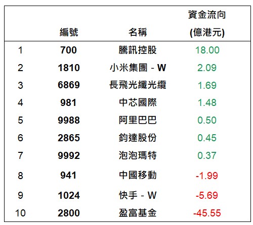 科網股個別發展,百度(9888.HK) 升3.2%、阿里巴巴(9988.HK)升1.9%、騰訊(700.HK)升2.2%、京東集團(9618.HK)升0.9%。小米(1810.HK) 推觸覺驅動機器人「TacRefineNet」模型,股價微升不足0.1%。快手(1024.HK) 早前直播間出現大量色情低俗內容,上週五遭網信辦罰款近1.2億元人民幣,股價跌2.7%。